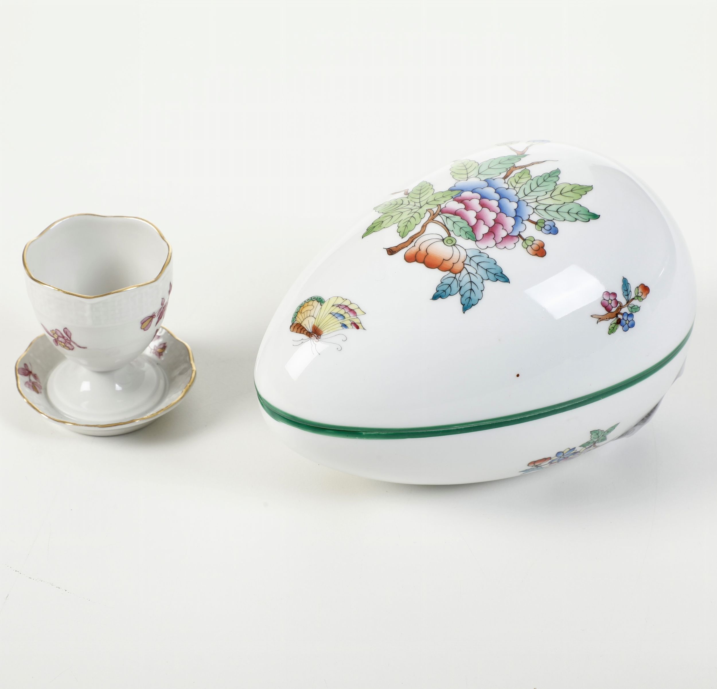Un cofanetto a forma di uovo e un portauovo.