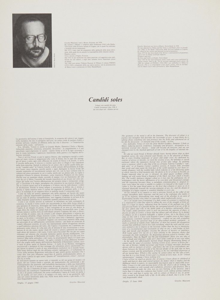 firma, data e tiratura a matita, es.5/99, timbro a secco Stampatore 'il torchio di Porta Romana'dimensione foglio: 70x50,5 cmdimensioni lastra. 38x38 cm, 50x38 cm, 54x34 cm