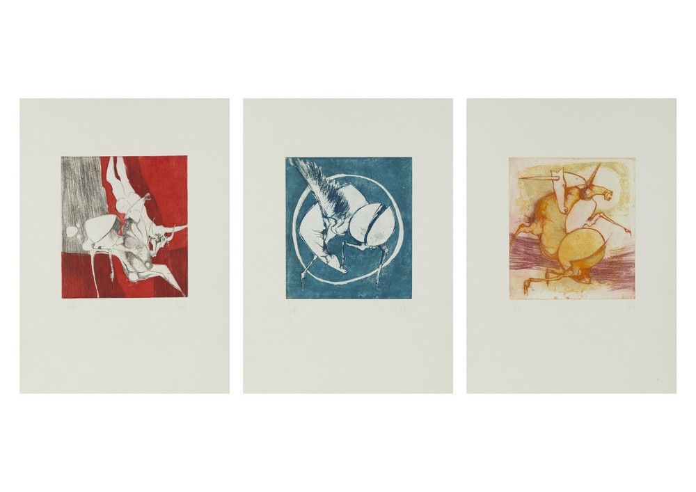 firma, data a matita, es. p.d.acartella contenente tre incisioni firmate e numerate dall'artista, tirate in 60 esemplari su torchio a mano dallo stampatore Berardinelli di Verona dimensioni foglio: 70x49,5dimensioni lastra: 33x29,5