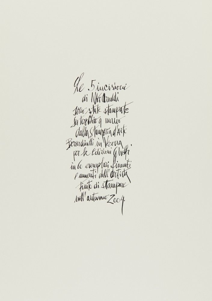 ogni foglio presenta firma, data e tiratura a matita, es. p.d.atimbro a secco stamperia Berardinelli, Veronaedizioni Ghelfi Veronadimensioni: 40x32,5 cm