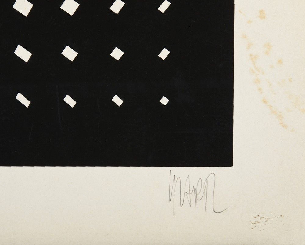 ogni foglio è firmate e numerate, es. 63/150Editore: Galleria Team Colore, Milano.Stampatore: Sam Villa, Milano.Cartella realizzata in occasione della mostra retrospettiva, Lago di Como, 20/30 settembre 1975 a cura di Luciano Caramel del Groupe de Recherche d'Art Visuel ( Garcia Rossi, Le Parc, Morellet, Sobrino, Stein, Yvaral).PROVENIENZACollezione privata, CagliariMancante la serigrafia di Le parc