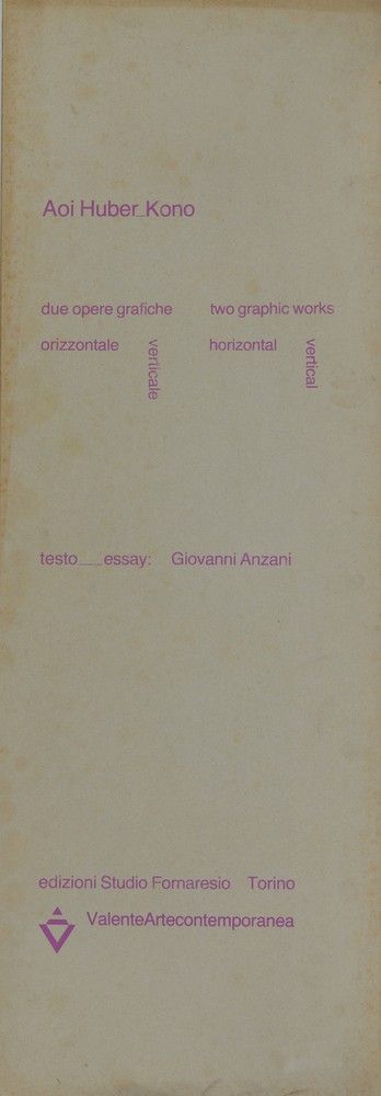 firma, data e tiratura a matita, es. 7/100 Edizioni Studio Fornaresio. Testo di Giovanni AnzaniPROVENIENZAValente Arte Contemporanea, Finale Ligure (SA)Collezione privata, Milano