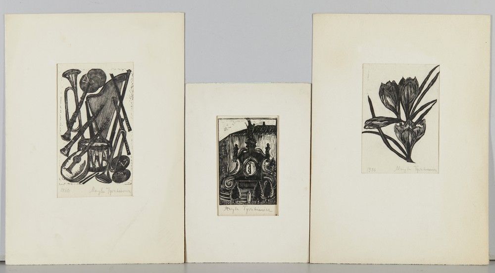- FONTANA firma, es. 9/30 a matita, 15,5x10 cm. lastra: 1x8 cm- FIORI firma, data 1936, es. 7/30 a matita 19,5x15 cm. lastra: 14x 10 cm- STRUMENTI MUSICALI firma, data 1960, es. 6/30, 20,5x15, lastra: 16,5 x 10 cm