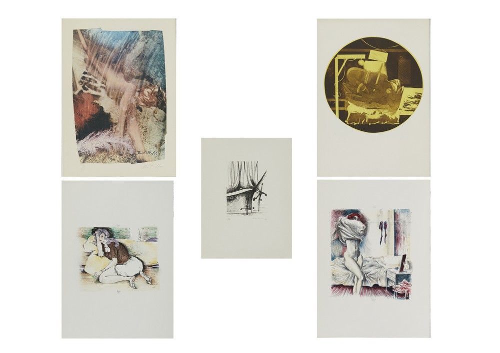 MIMMO ROTELLAserigrafiadimensioni: 69.5x49.5cmdimensioni lastra: 59.5x41cmfirma, data1973 in lastra firma, tiratura a matita es. XXXI/XXXVGASTON ORELLANAacquafortefirma a matitadimensione foglio:70x49.5cmdimensione lastra: diametro 42cmGABRIELE MUCCHIserigrafiafirma, data1977,tiratura a matita es. 2/100dimensione foglio: 70x50.5cmdimensione lastra: 39x35.5cmGABRIELE MUCCHIserigrafiafirma, data1977,tiratura a matita es. 5/100dimensione foglio: 71x49cmdimensione lastra: 29x38cmFLAVIO COSTANTINIacquafortefirma, data1982,tiratura a matita es. 13/24dimensione foglio: 53x39cmdimensione lastra: 24.7x18.5cmfiligrana Hahnemühle