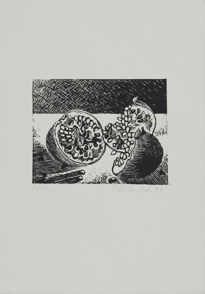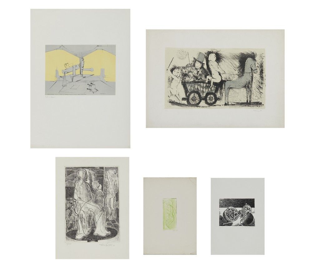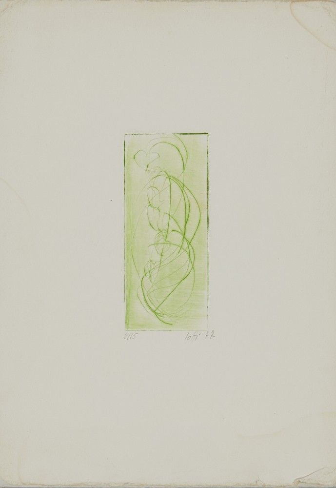 LOTTIacquafortefirma, data 1977, tiratura a matita es. 2/15dimensione foglio: 35x25cmdimensione lastra: 14.4x6cm GIOXE DE MICHELIlitografiafirma, data 1993, tiratura a matita es 2/25dimensione foglio: 35x25cmdimensione lastra: 12.5x16cmTANO SANTOROacquafortefirma, data 1977,tiratura a matita es.15/30dimensione foglio:47x34cmdimensione lastra:35x25cmUGO CARUSOSTANZA-FIGURINA-STRUMENTO SU TRONCO DI PIRAMIDE ROVESCIATO DIVISO-SEDIA ROVESCIATA,1968serigrafiafirma, tiratura a matita es.74/75firma, data, titolo in lastra dimensione foglio:71x51cmdimensione lastra:25.5x35cmfiligrana Charta GoyaAUTORE NON IDENTIFICATOserigrafiafirma, data 1972,tiratura a matita es.16/55timbro a secco: musei d'arte, Comune di Veronadimensione foglio:50x70cm dimensione lastra:30.5x50.5cm