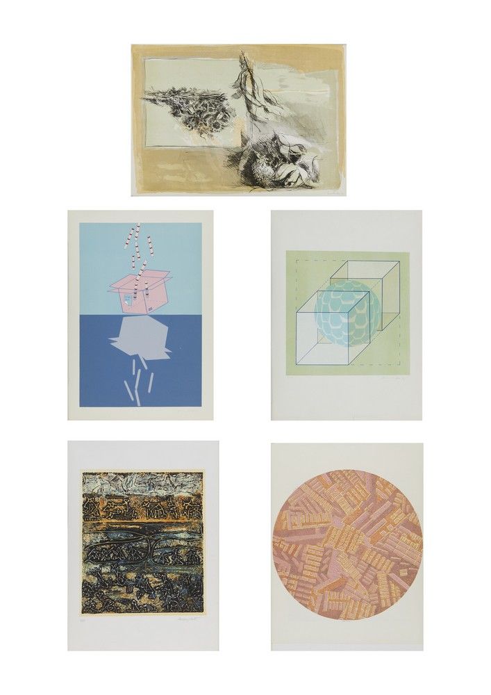 CAVALLI FELCIfirma, data1968-1969, tiratura a matita, es. p.a. 6/45dimensione foglio: 70.5cmx50cmdimensione lastra: 55.5x40cmPAOLO SCIRPASOLE, 1970firma, data, es. p.d.s. a matitafiligrana BFK Rivesdimensione foglio: 70.5cmx50cmdimensione lastra: 49cm (diametro)REMO GIATTIfirma, tiratura a matita, es. 7/80dimensione foglio: 69.7mx49cmdimensione lastra: 48X41.5cmGIANNI D'ADDAfirma, data1975 tiratura a matita, es. 5/35filigrana: Charta Goyadimensione foglio:71x50cmdimensione lastra:40.5x40.5cmGIANNI D'ADDAfirma, data1978 tiratura a matita, es. 25/50filigrana: Fabrianotimbro a secco: Grafica Ldimensione foglio:70.5x48cmdimensione lastra:60x40cmARTISTA NON IDENTIFICATOfirma, data 1974 tiratura a matita, es. 42/80dimensione foglio: 50 x71 cm