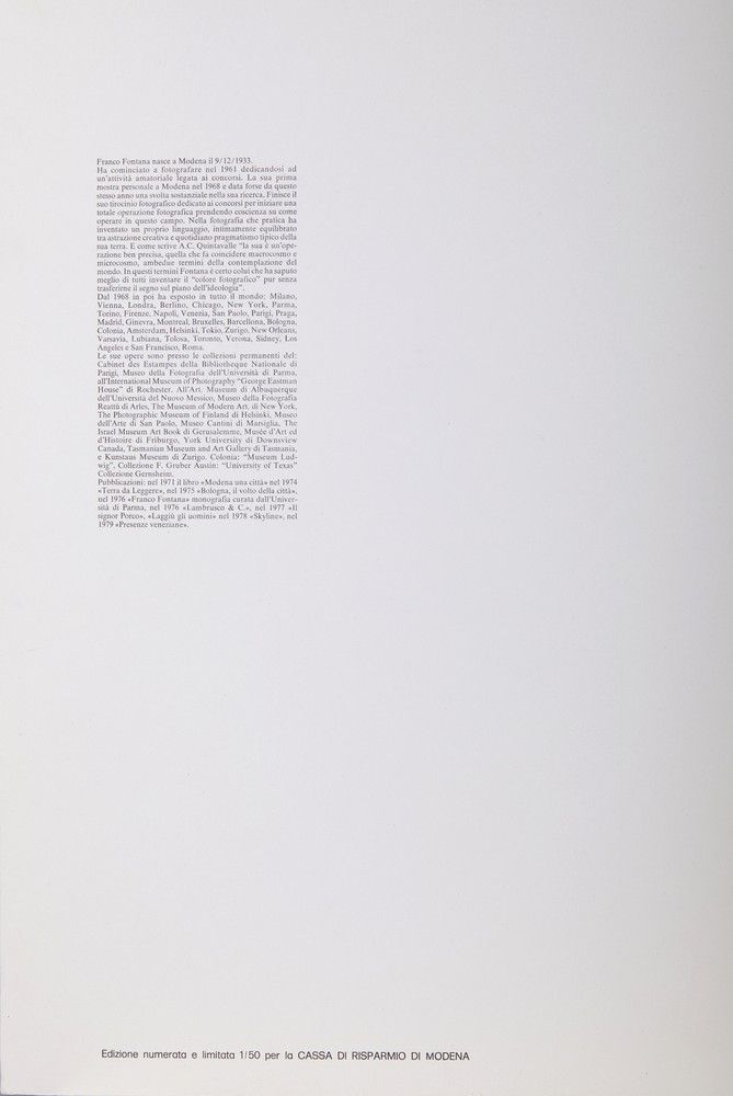 firma e e tiratura a matita, es. 40/50 edizione limitata per la Cassa di Risparmio di Modenala fotografia è inserita all'interno del suo passepartout originalePROVENIENZACollezione privata, Modena