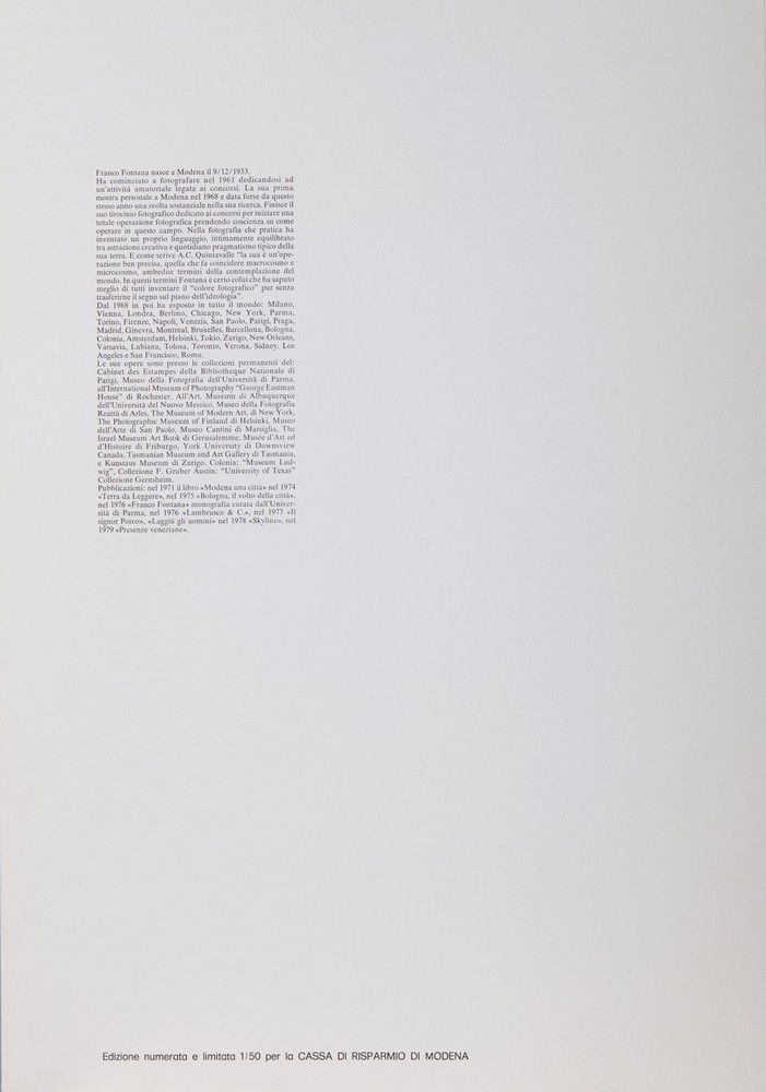 firma e tiratura a matita, es. 18/50 edizione per la Cassa di Risparmio di Modenala fotografia è inserita all'interno del suo passepartout originalePROVENIENZACollezione privata, Modena