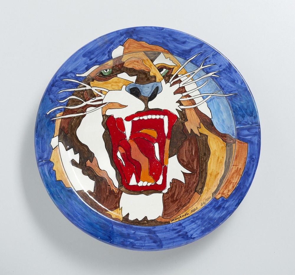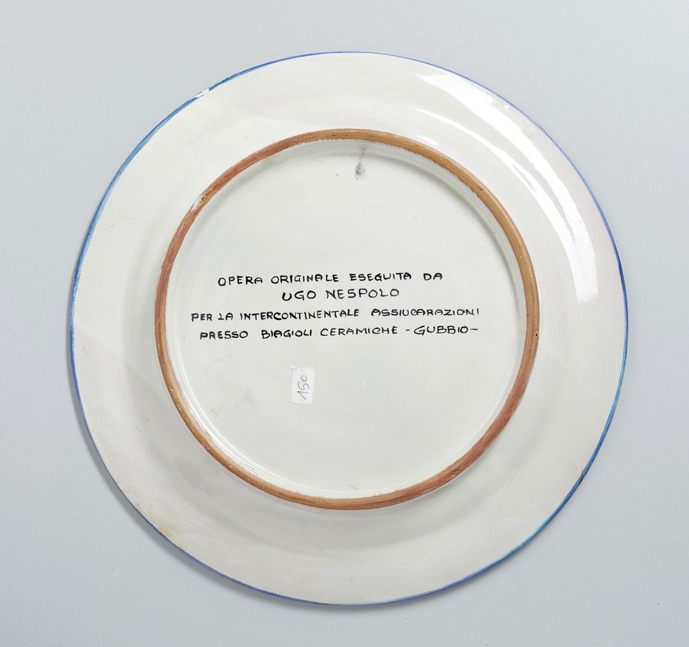 firma, data, es. 64/120sul retro: certificazione di autenticità da parte dell'artista.L'opera è stata eseguita per la Intercontinentale Assiucarazioni presso Biagioli Ceramiche, Gubbio