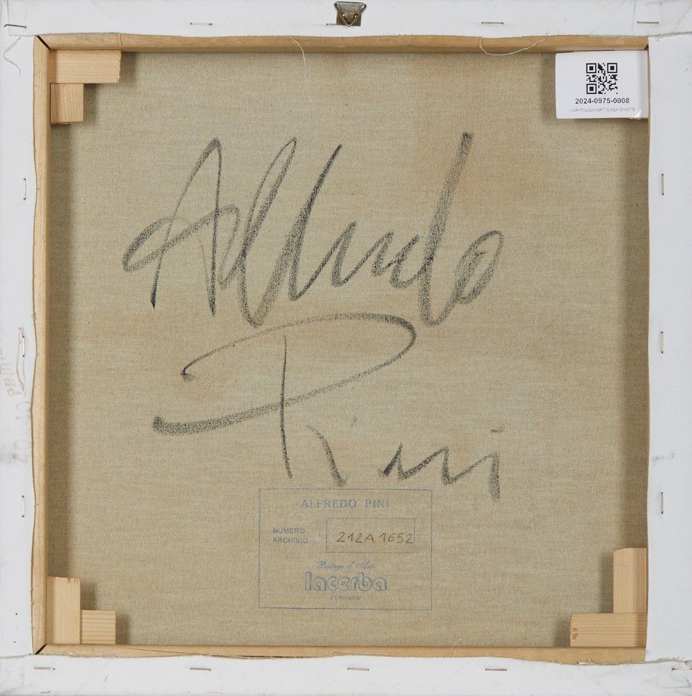 firmasul retro: firma, timbro 'Alfredo Pini, Bottega d'Arte Lacerba, Ferrara, numero di archivio'