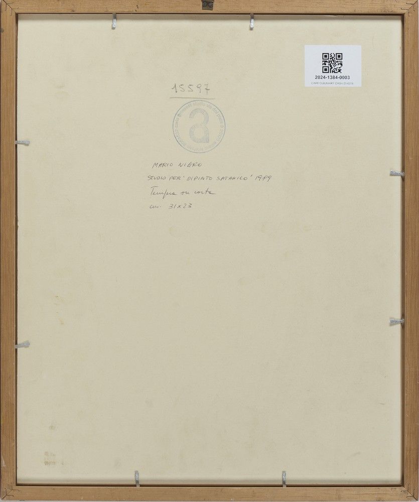 firma, data sul retro: timbro galleria d'arte Grossetti, MilanoL'opera è registrata presso l'Archivio Mario Nigro con il n. 0972.5.1c MNPROVENIENZAGalleria d'arte Grossetti, MilanoCollezione privata, Milano