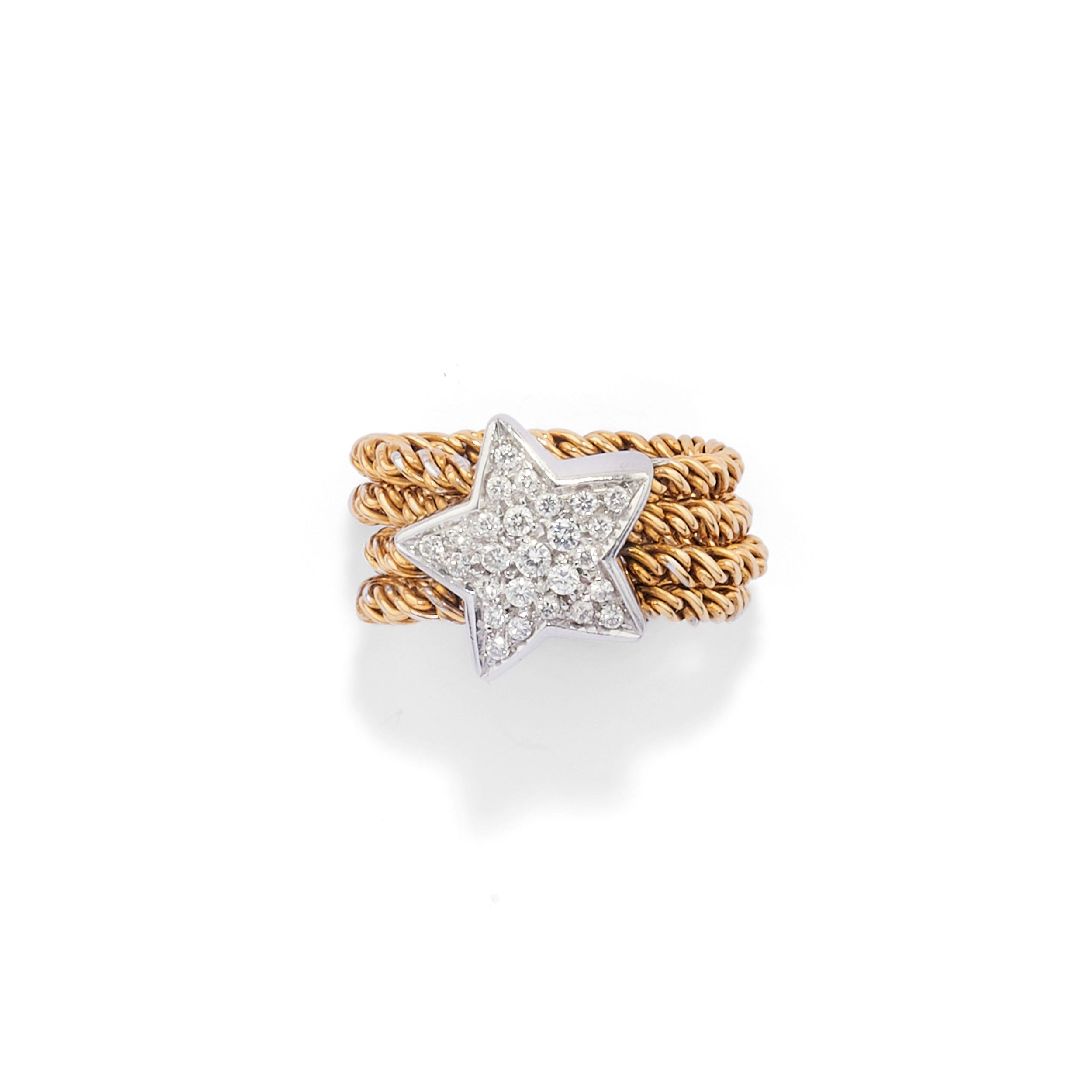 motivo a stella decorata con diamanti taglio brillante, trattenuta da quattro catene morbide a torchon.