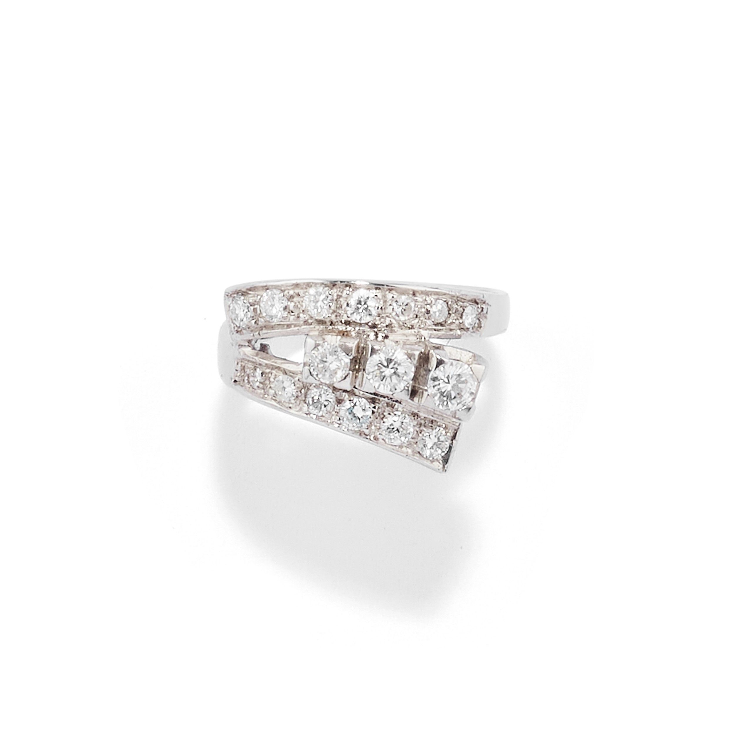 motivo a contrarič, con diamanti taglio brillante per totale ct 1,00 circa.
