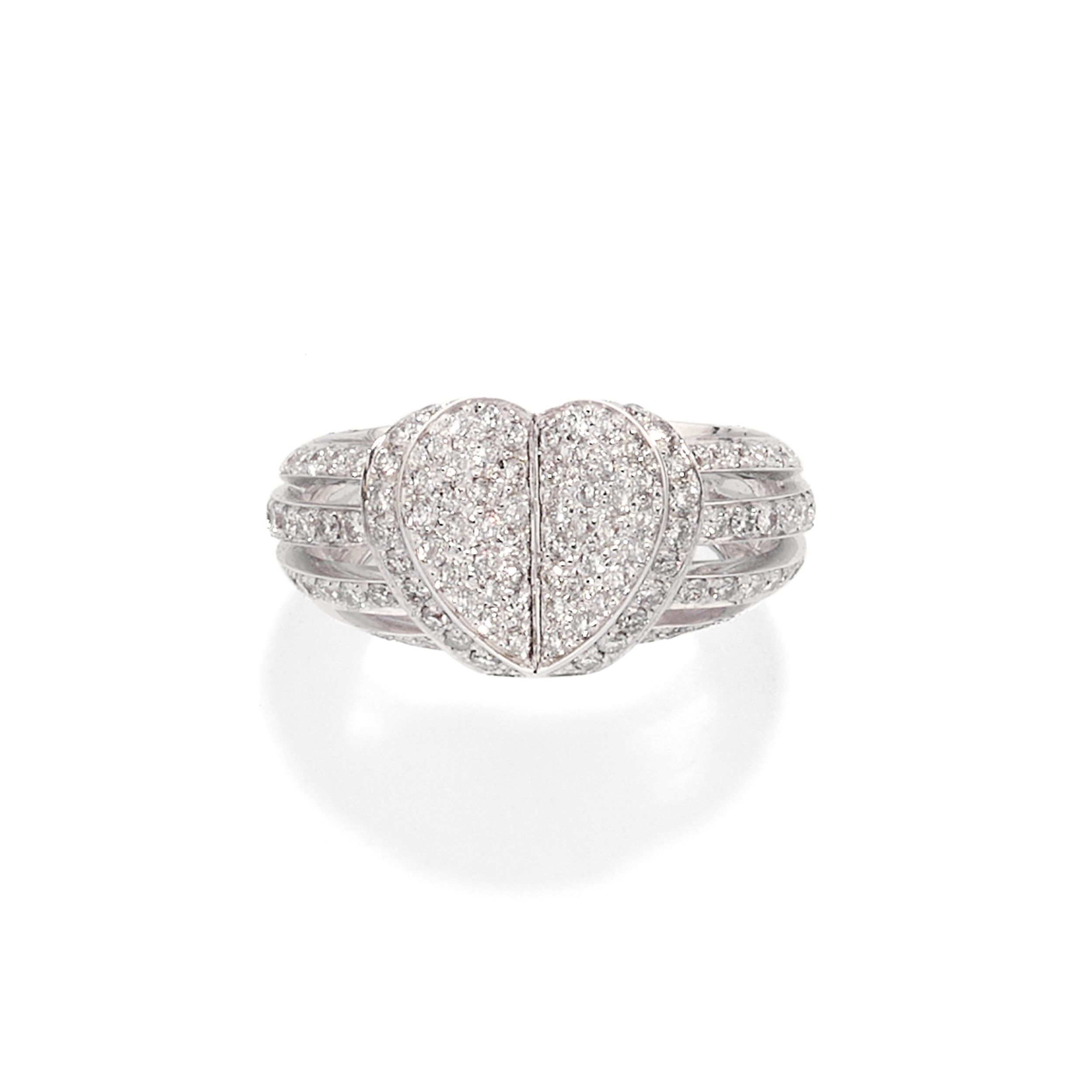 con motivo a cuore e gambo traforato, decorato da diamanti taglio brillante.
