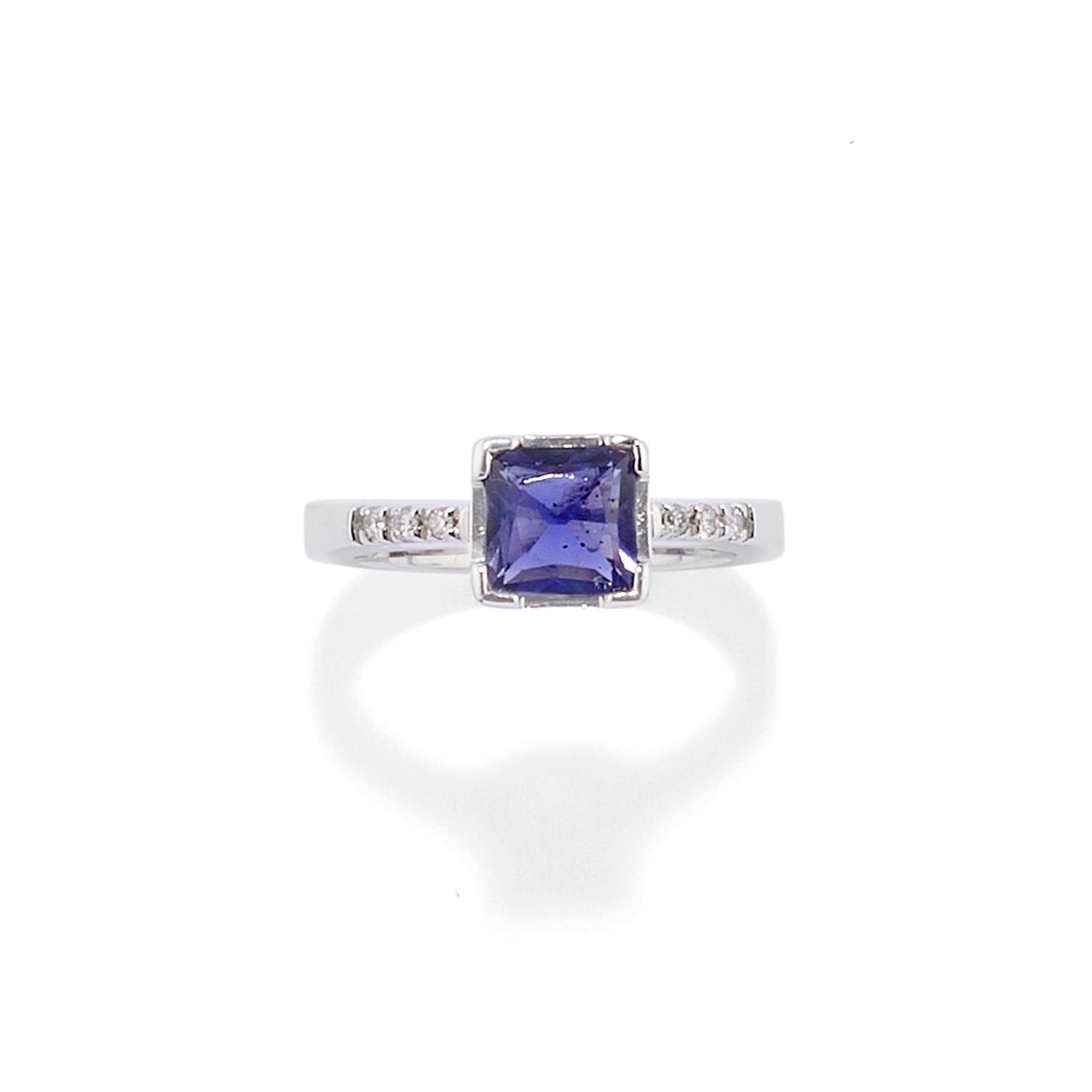 con jolite di forma quadrata taglio sfaccettato e diamanti taglio brillante.