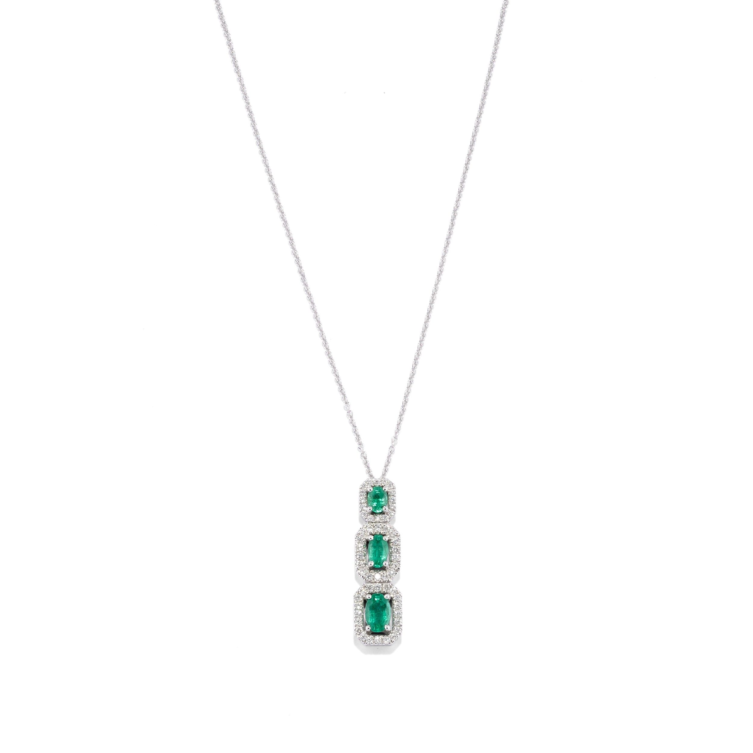 con pendente con smeraldi taglio ovale per totale ct 1,20 circa e diamanti taglio brillante per totale ct 0,80 circa.