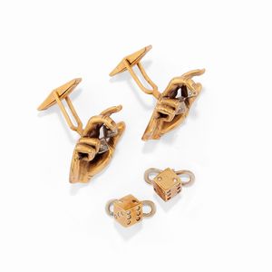 in oro bicolore 18k, Peso g 14,50 misura 11 a contrariè, con pietre ad imitazione del diamante.