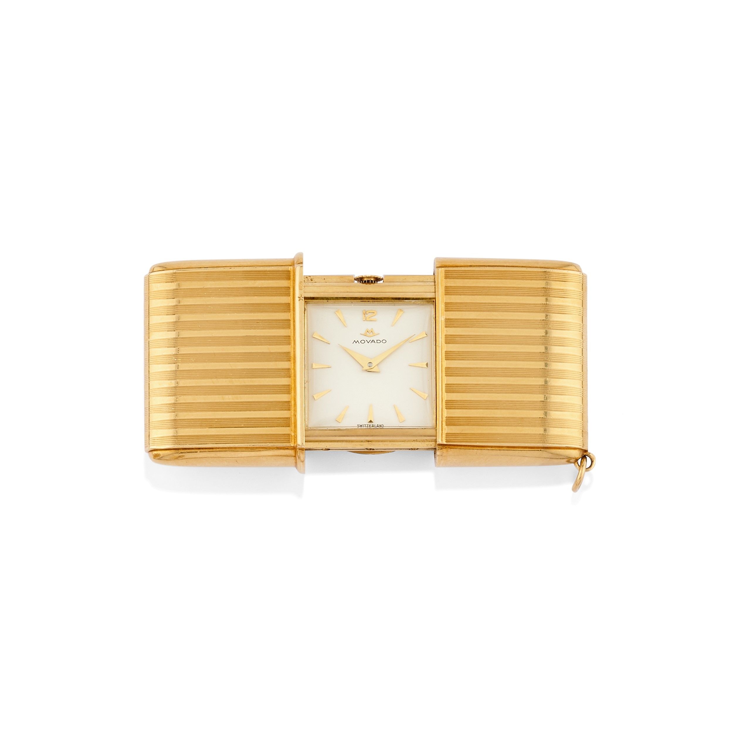 mod. Ermeto, apribile, cassa quadrata, quadrante chiaro, indici applicati, movimento a carica manuale, da revisionare.