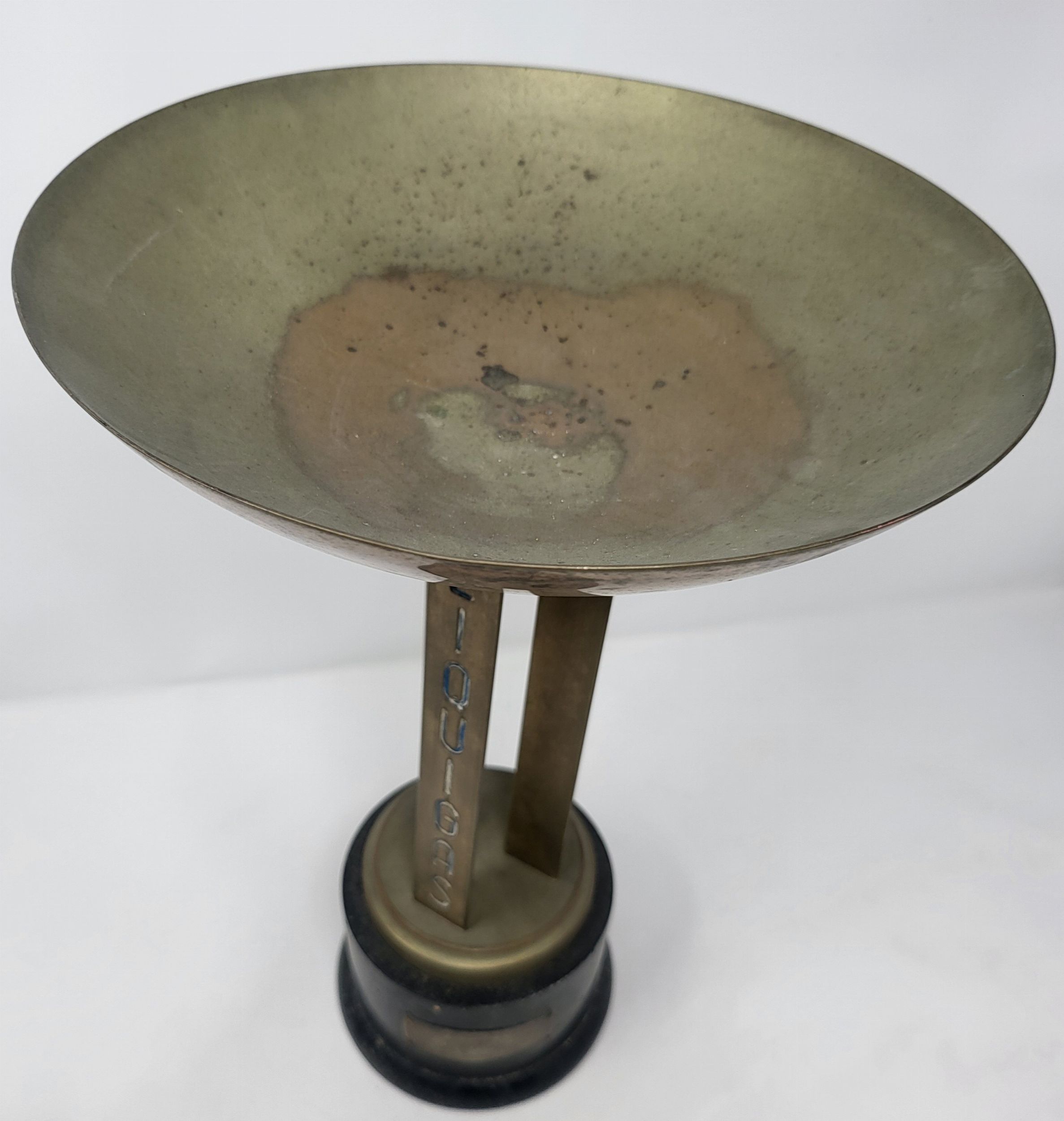 cm. 35 1940s Trofeo LIQUIGAS con targhetta applicata alla base. Trofeo formato da tre colonne di sezione triangolare con la parola LIQUIGAS impressa su ogni colonna, tracce di smalto rosso, coppa che sormonta le tre colonne, base in legno. Trofeo degli anni '940 assegnato fino al 1952 come riporta la targhetta in metallo inciso. Buone condizioni, segni del tempo. Misura circa cm.35 in altezza.