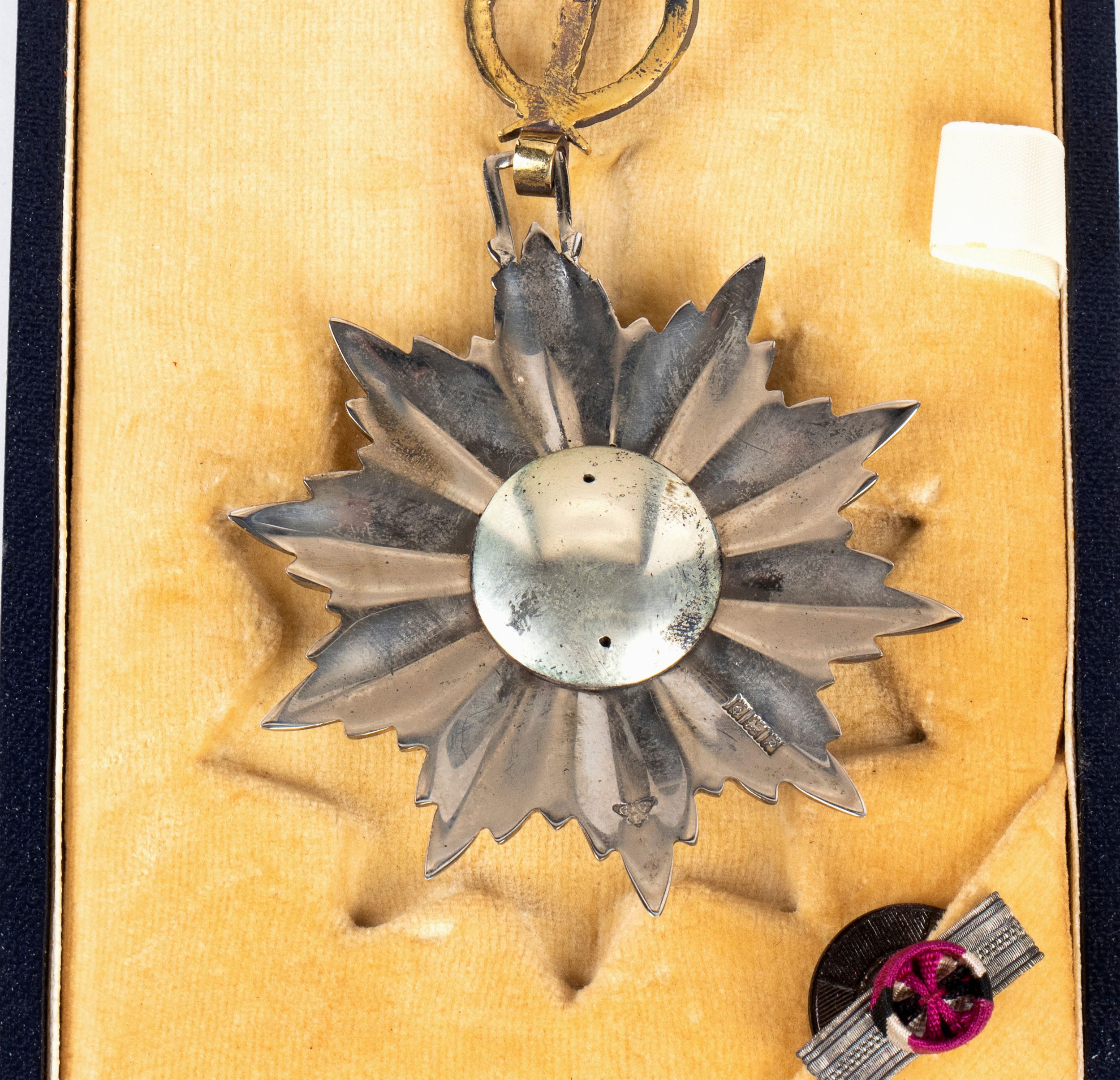 seconda metà XX sec. Rara insegna da commendatore della Stella d'Onore, in uso dal 1972 al 1984, in argento e smalti, nastro originale, conservata in astuccio, in ottimo stato di conservazione.
