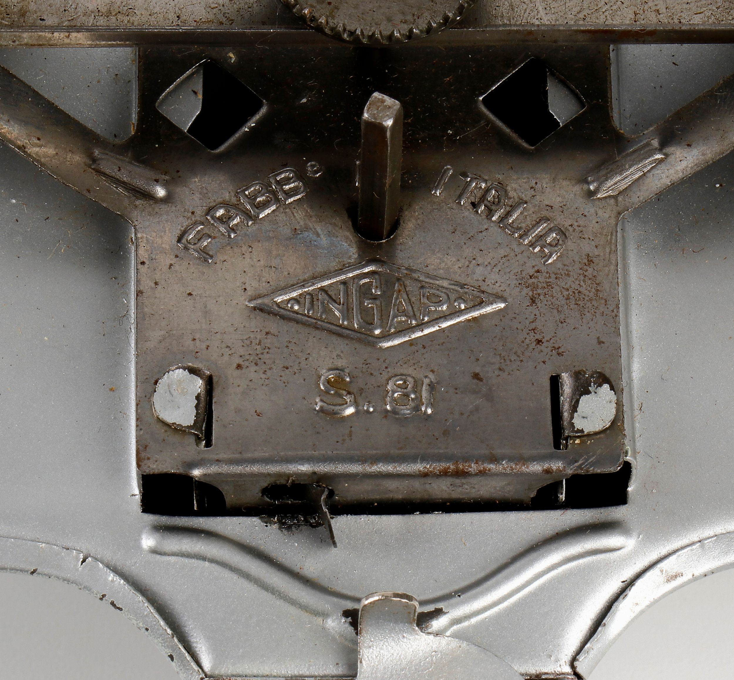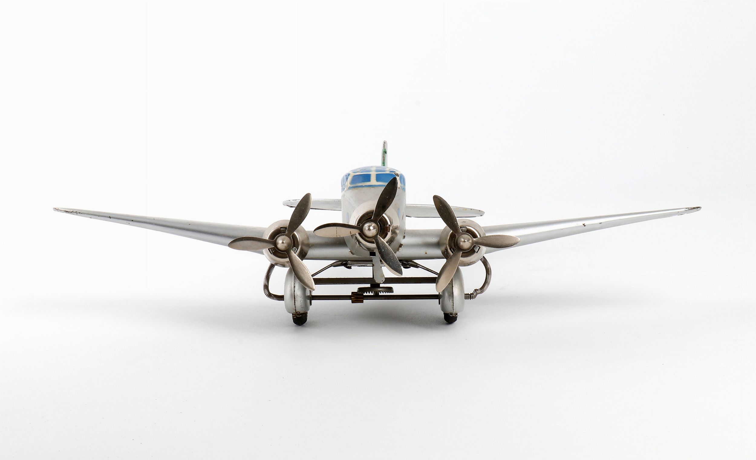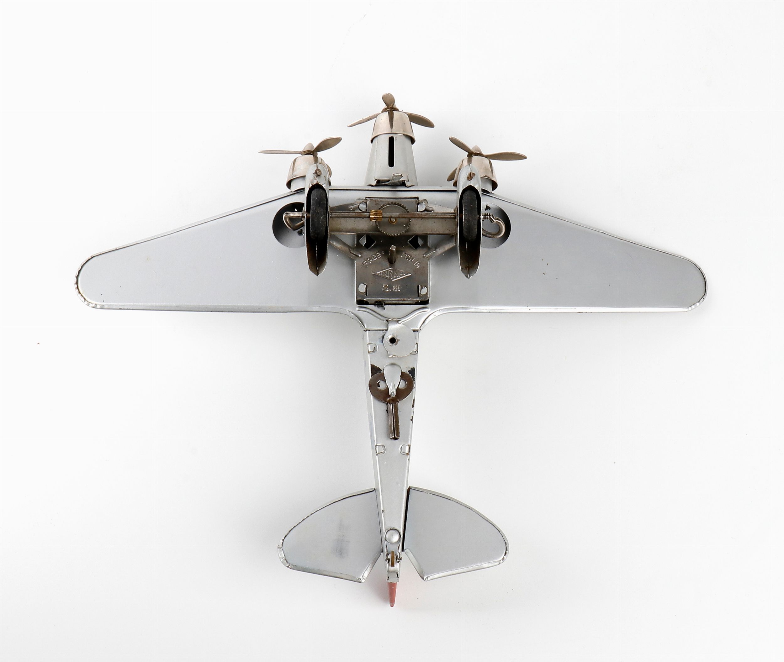 latta 1930s Savoia Marchetti S81 della INGAP , livrea con fasci littori aerografati sulle ali. Aerografati anche i finestrini della cabina di pilotaggio, i laterali, il marchio ed il tricolore sul timone di coda. In ottime condizioni, motore con carica a molla funzionante, elica rotante, fornito di chiave originale. Misura circa cm.33,5x25