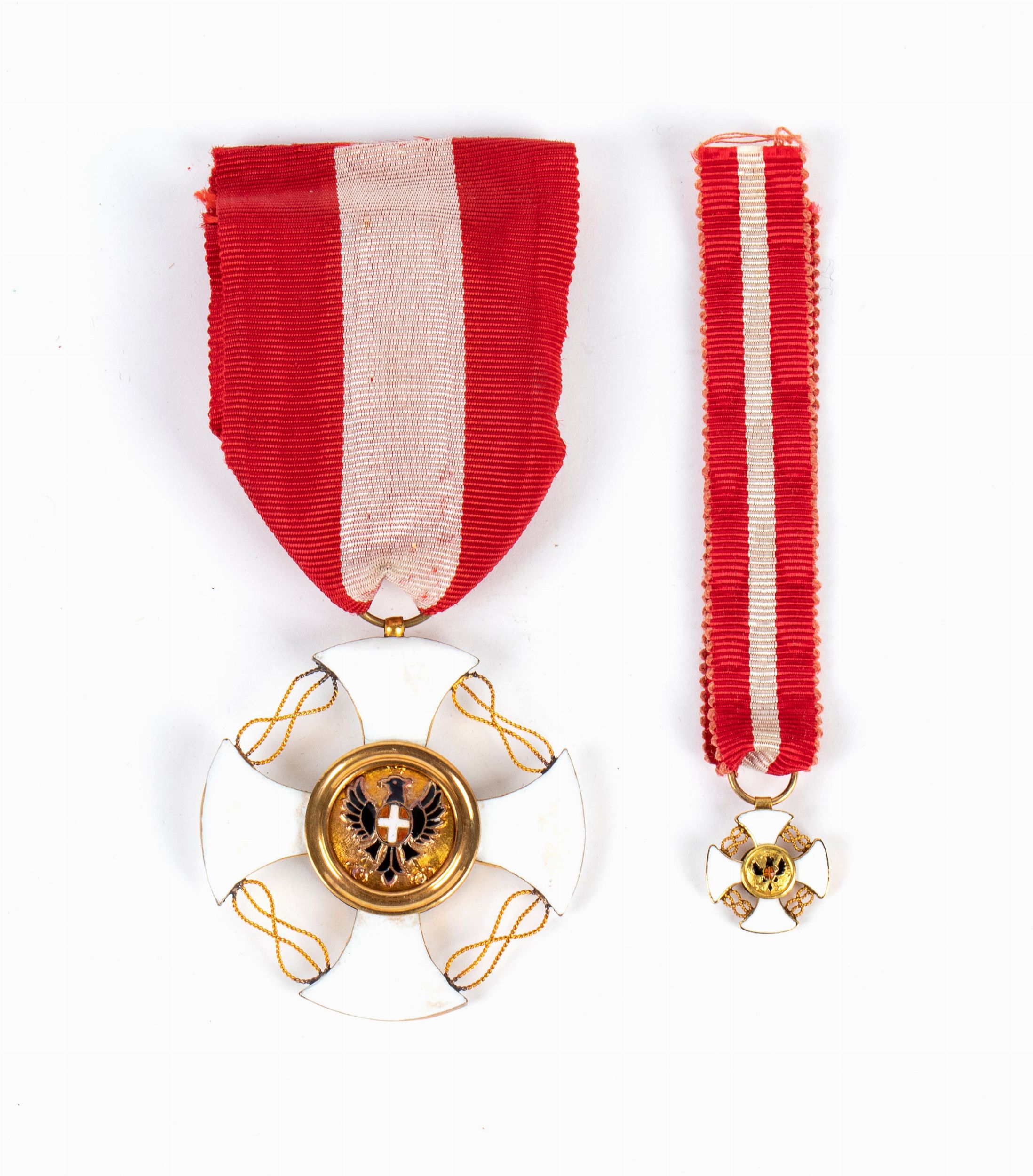 prima metà XX sec. In oro e smalti, nastrino originale, con miniatura. Conservata in astuccio.