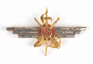 70 mm prima metà XX sec. Distintivo da pilota militare, coniato in bronzo dorato, al verso attacco a gancio senza [..]