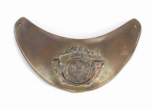 prima metà XX sec. Gorgera in ottone stampato, bordata e con il bordo superiore rialzato, fregio di cornetta [..]