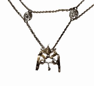 seconda metà XX sec. Rarissimo collare da Sediario in argento, formato da pendente a forma di Tiara papale [..]
