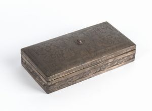 21x11x6 1928 Cofanetto portasigari, in argento marcato 800 , con incisioni floreali a bulino, recante lo stemma [..]
