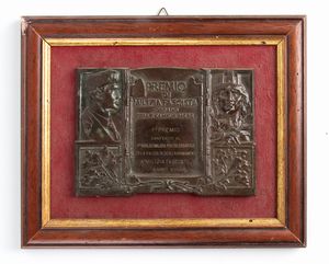 bronzo, 17x12,5 Placca commemorativa premio di MILIZIA FASCISTA organo a stampa delle Camicie Nere - 1° Premio [..]