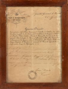 27x35 cm 1848 Lettera di presentazione e diploma del corpo di osservazione del Tirolo di Giacomo Durando.