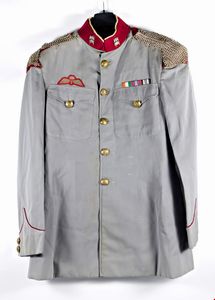 prima metà XX sec. Bellissima giubba da ufficiale dei lancieri di Aosta, in cordellino grigio con bavero e filettature [..]