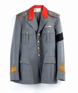 metà XX sec. In diagonale grigio con collo amaranto caricato dei fregi di specialità in metallo bianco, spalline [..]
