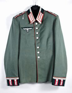 prima metà XX sec. Giubba da parata da sottufficiale di artiglieria, in gabardina di lana feldgrau, collo e paramani [..]