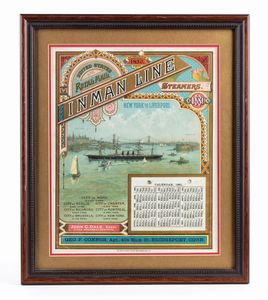 22x27 Calendario per l'anno 1881 della INMAN LINE - UNITED STATES ROYAL MAIL - New York to Liverpool - Su cartoncino [..]