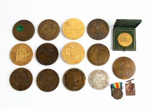 Gruppo di 6 medaglie di varie dimensioni e metalli. Buone condizioni.