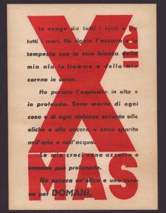 8x11 cm 1943 Volantino propagandistico per la X° MAS. In carta litografata ad inchiostro nero e rosso per la [..]