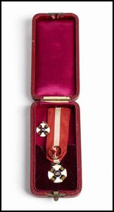 prima metà XX sec. In oro e smalti, nastrino originale, con miniatura. Conservata in astuccio.
