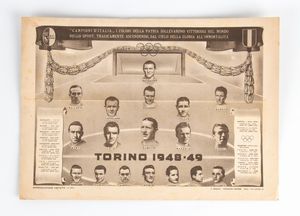 35x24 Cartoncino commemorativo del Grande Torino anno 1948-49. Tipografia L.Morara - Roma Via Ulpiano 53. Buone [..]