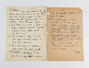Lettera su due fogli differenti (misure circa cm.23x30 e 22x28) scritta autografa e firmata di pugno da Benito [..]