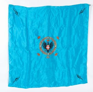 27x27 cm prima metà XX sec. Drappella da tromba dell'11° Rgt artiglieria da campagna 'Monferrato', supporto [..]