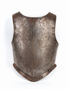 fine XIX sec. Antico petto di armatura in acciaio sbalzato con incisioni all'acqua forte rappresentante Leone [..]