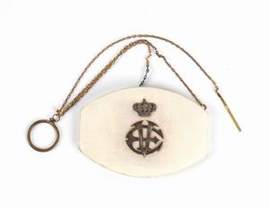 85x60 mm inizi XX sec. Carnet di ballo in pelle bianca con monogramma reale coronato, completo di anello e piccola [..]