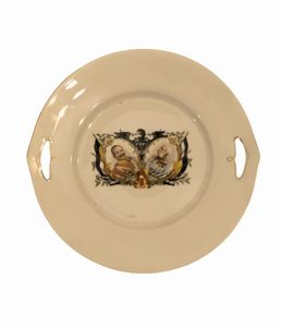 prima metà XX sec. Piatto in porcellana raffigurante i ritratti dei due imperatori, Guglielmo e Francesco Giuseppe, [..]