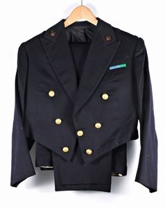 prima metà XX sec. Completo di giacca e pantaloni in castorino di lana blu scuro con bottoni in metallo dorato [..]