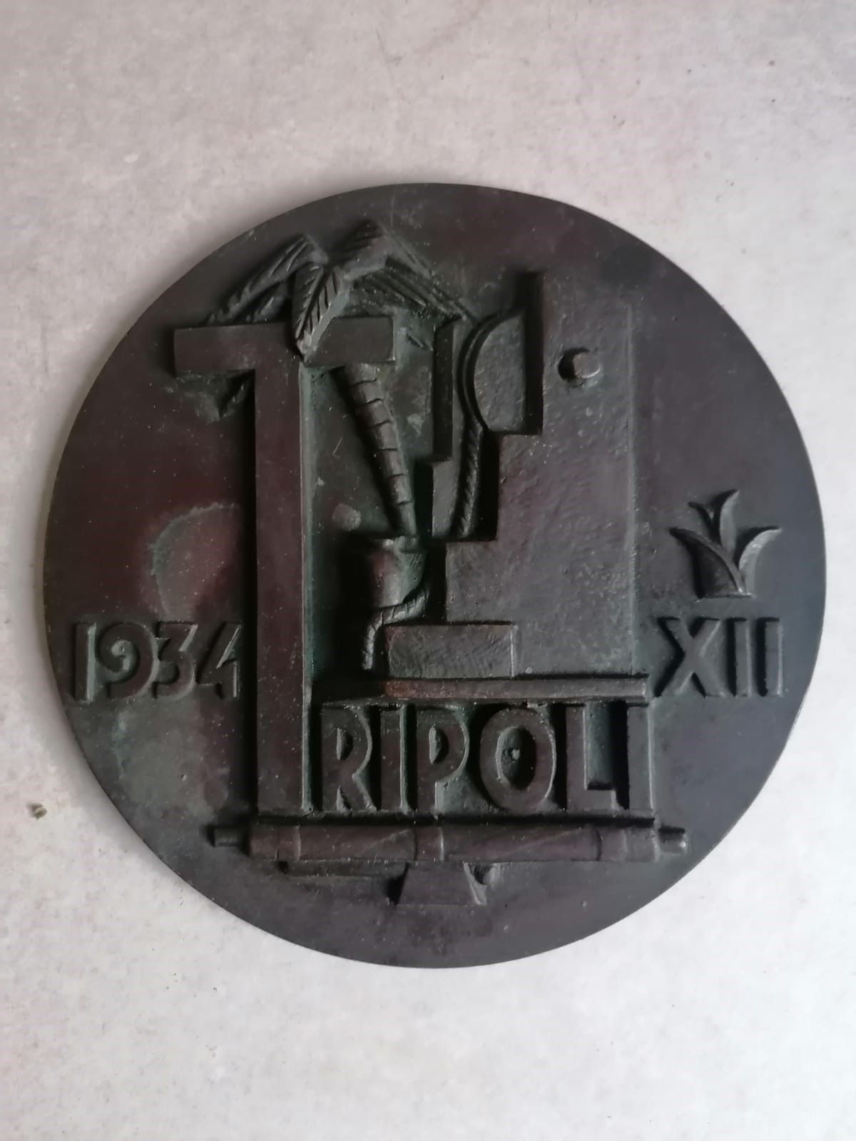 prima metà XX sec, Placca in bronzo con allegorie della città di Tripoli, datata 1934, in bella patina