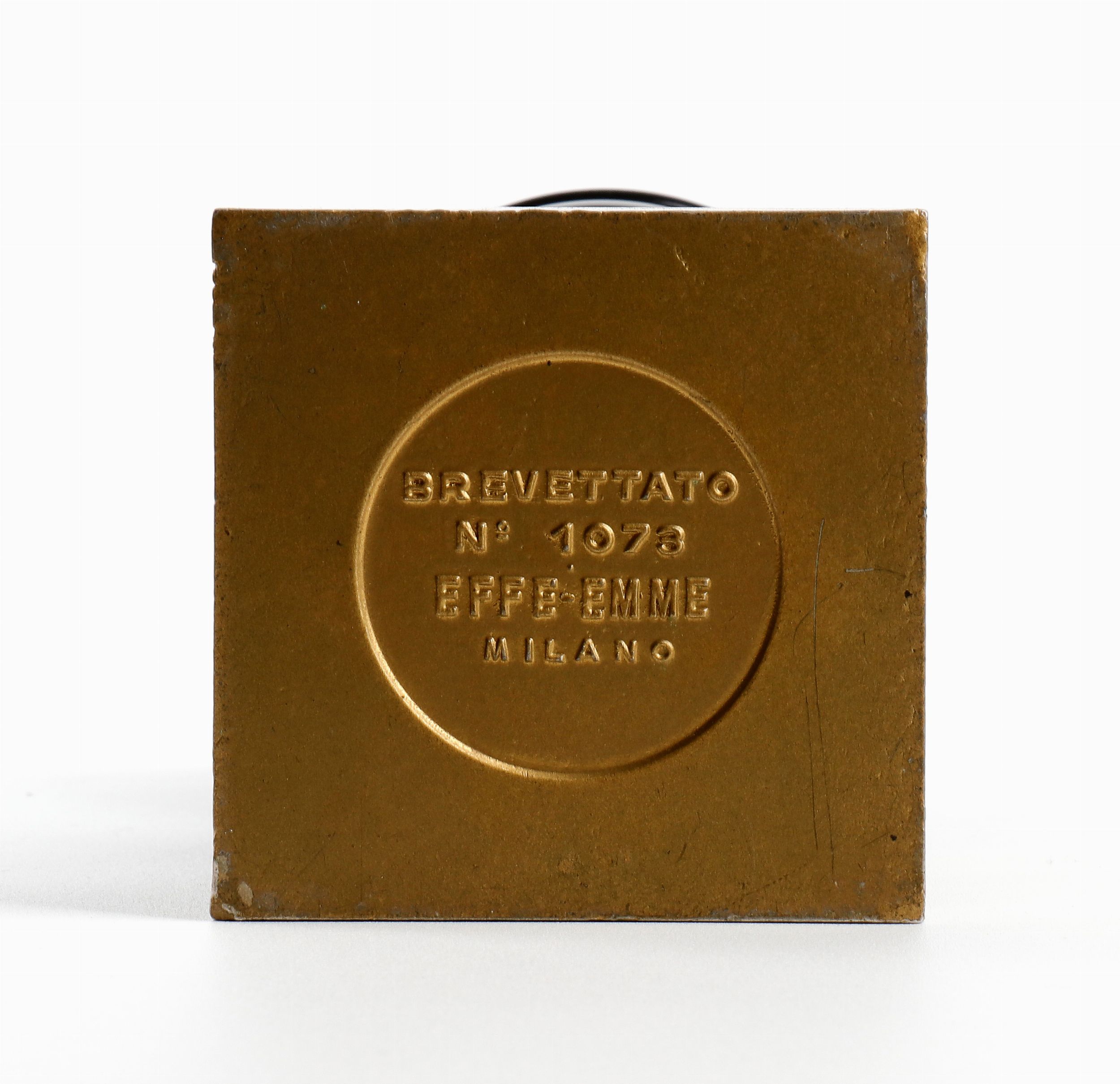 1935 Profilo Continuo del Duce in lega di alluminio, materiale autarchico, marcato alla base BREVETTATO N'1073 EFFE-EMME MILANO. Oggetto originale del ventennio fascista. Altezza totale circa cm. 16,5. In perfette condizioni.