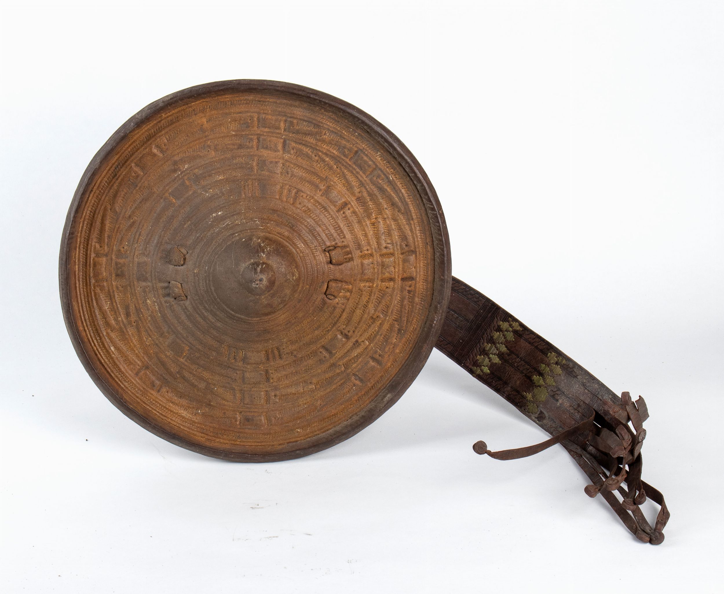 prima metà XX sec. Rotella somala, piccolo scudo in pelle sigillata. In ottimo stato.