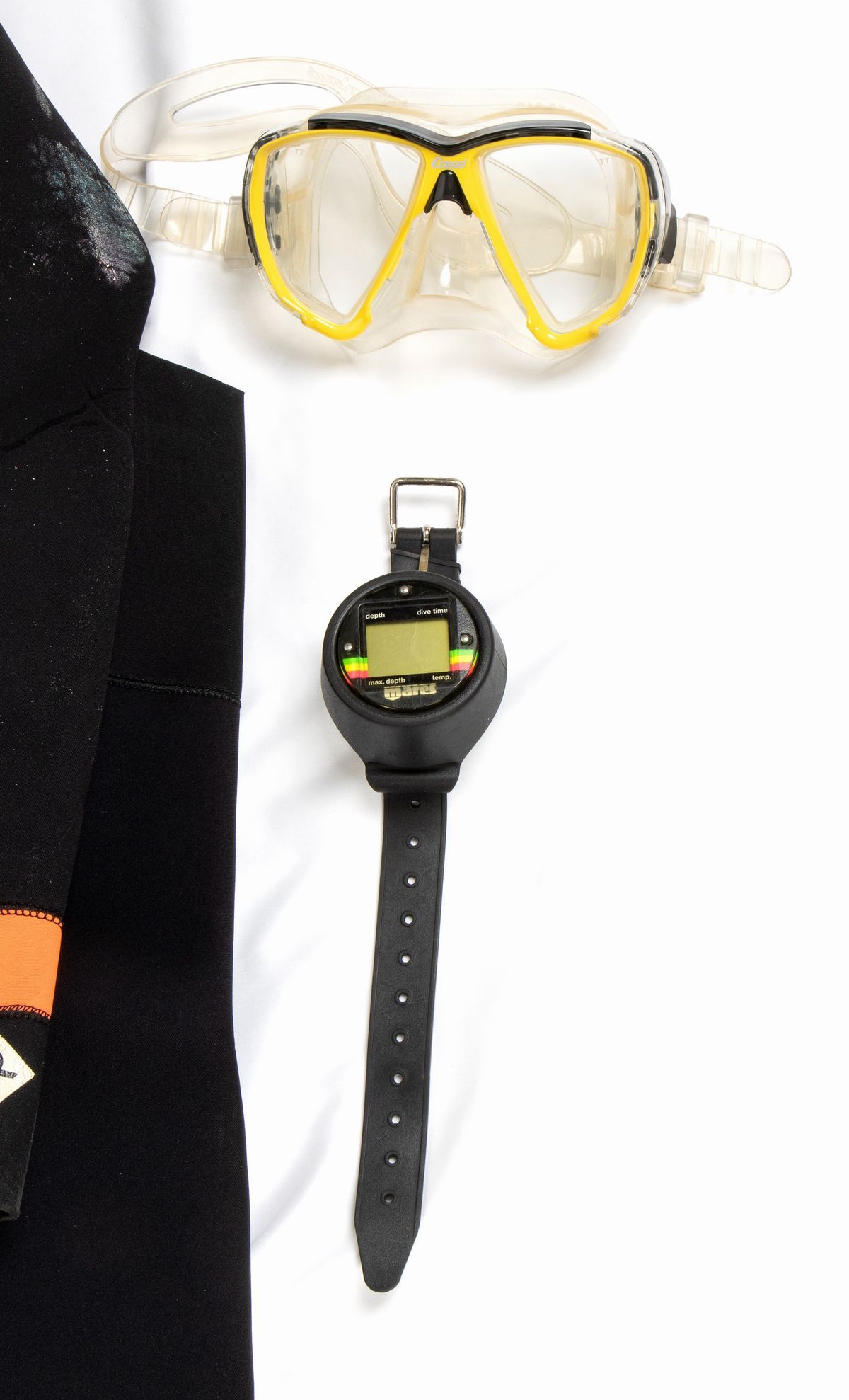 2000 Equipaggiamento originale appartenuto a Umberto Pellizzari usato nel 2000 durante la realizzazione del film IMAX (2D) dal titolo OceanMen insieme al 'rivale' Pipin Ferreras. Muta Cressi Sub composta da 'giacca' e pantaloni con sponsor CRESSI, Agip, Sector, firmata con dedica ed autografo originali scritti di pugno con pennarello nero UMBERTO PELLIZZARI 80 115 150 ad indicare le profondità raggiunte nei records. In aggiunta un paio di occhiali ed un profondimetro MARES usati sempre da Pellizzari, con una foto cartolina autografata in originale UMBERTO PELLIZZARI 80 115 150. Materiale usato, in ottime condizioni. Il 17 settembre 1992, a Ustica, riconquista il record mondiale di immersione in apnea in assetto costante con -70 metri. L'11 ottobre 1993, nei pressi di Montecristo, scendendo a -123 metri stabilisce un nuovo record in assetto variabile no limits. Il 24 luglio 1994, a Cala Gonone-Dorgali, in Sardegna, a -101 metri, Pelizzari conquista il nuovo record mondiale di immersione in apnea in assetto variabile regolamentato. Nel luglio 1995, a Villasimius in Sardegna, altri due nuovi record mondiali: -72 metri in assetto costante e -105 metri in assetto variabile regolamentato. Nel 1996, nuovamente a Villasimius, con -110 metri riconquista i primati nell'assetto variabile e con -131 metri nell'assetto variabile no limits. Il 13 settembre 1997, a Porto Venere in Liguria, riconquista il record in assetto costante con la profondità di -75 metri. Il 20 settembre, scendendo a -115 metri, riconquista il record in assetto variabile. Il 18 ottobre del 1999 al largo di Portofino, Umberto stabilisce il nuovo primato mondiale di apnea in assetto costante con -80 metri. Il 24 ottobre, col supporto tecnico della Nave Anteo della Marina Militare Italiana, Pelizzari è protagonista di una notevole impresa: -150 metri in assetto variabile no limits in un tempo di 2'57', limite mai finora raggiunto dall'uomo in apnea. Nel 2000 è protagonista nella realizzazione del film IMAX (2D) dal titolo OceanMen insieme al 'rivale' Pipin Ferreras. Il 3 novembre 2001, a Capri, l'atleta scende a -131 metri in 2'44' primeggiando nell'assetto variabile regolamentato; Umberto dedica questo record a tutti coloro che nei trascorsi 11 anni d'attività gli sono stati vicini e si ritira dalle competizioni.
